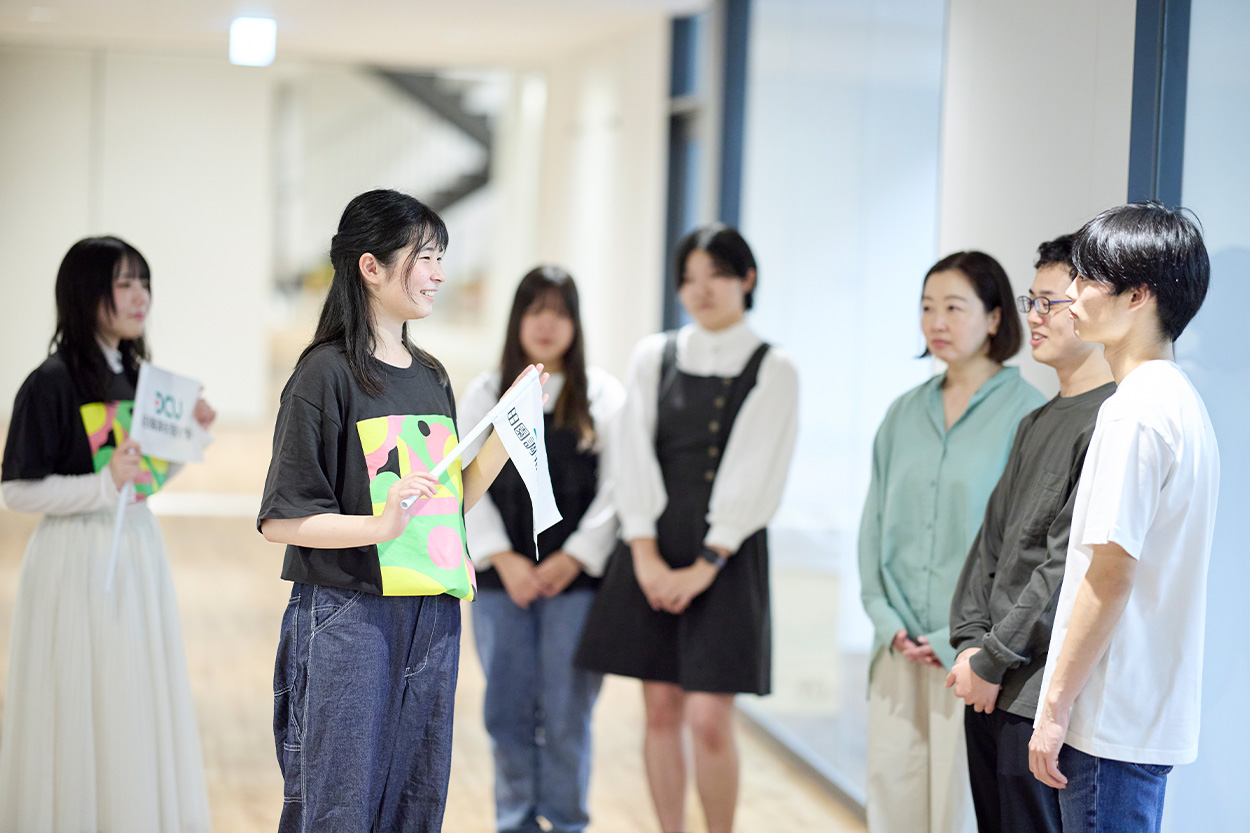 #在学生と話せる学生スタッフがキャンパス内をご案内します。普段どんな学生生活を過ごしているか、ぜひ聞いてみてください!