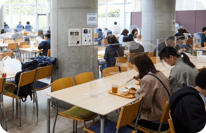 安くて美味しいと学生から人気の学食。学生生活にとって食事は大切です。オープンキャンパス当日は特別営業しています。