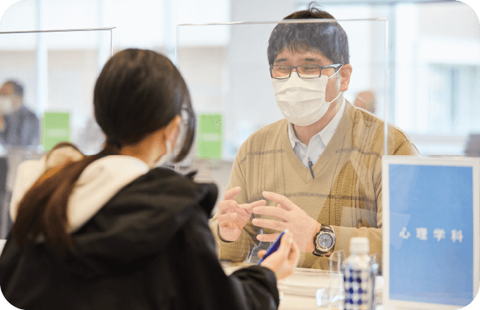 #大学の先生と話せる「学科の違いが知りたい」「奨学金について聞きたい」など、疑問や不安に教職員がお答えします。